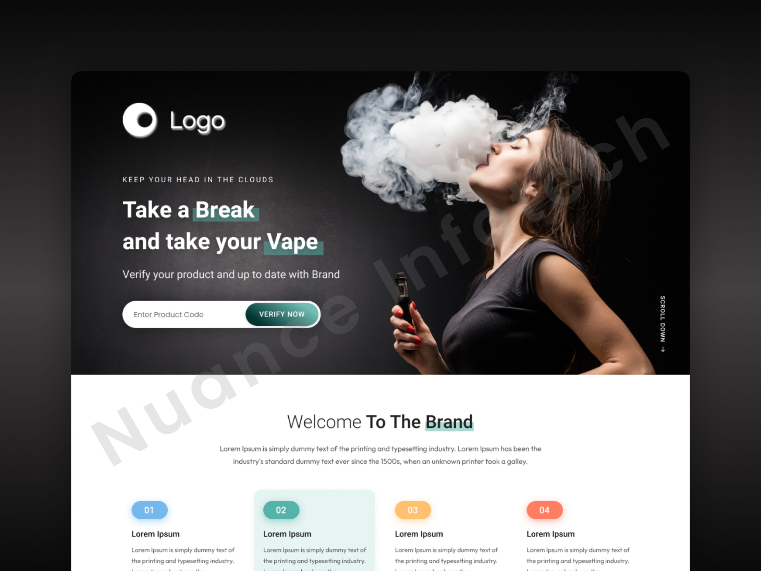 A refined product verification landing page UI/UX design for a vape brand that emphasizes security cues, intuitive interaction flows, and clear user guidance to validate product authenticity with ease and confidence.